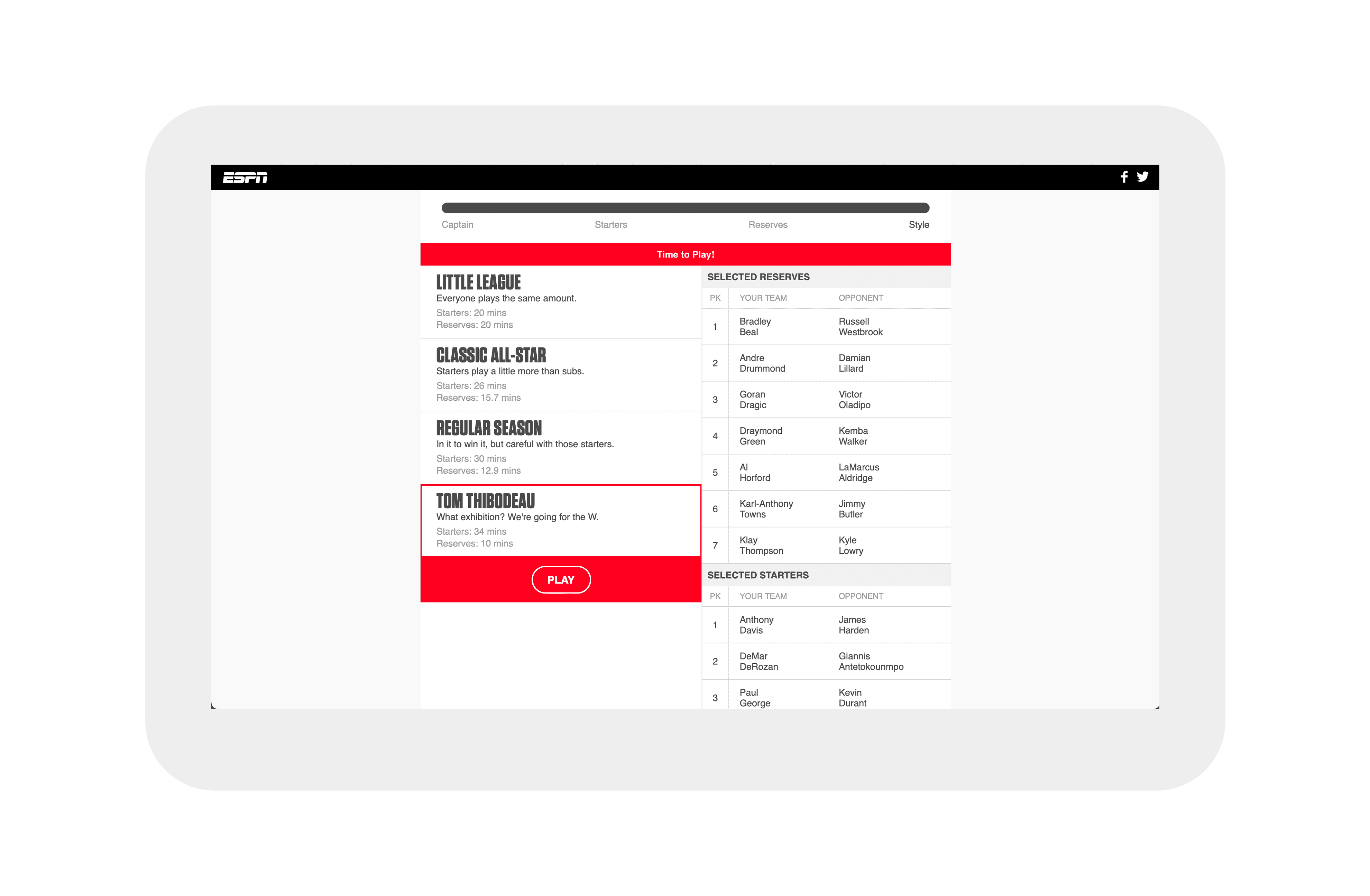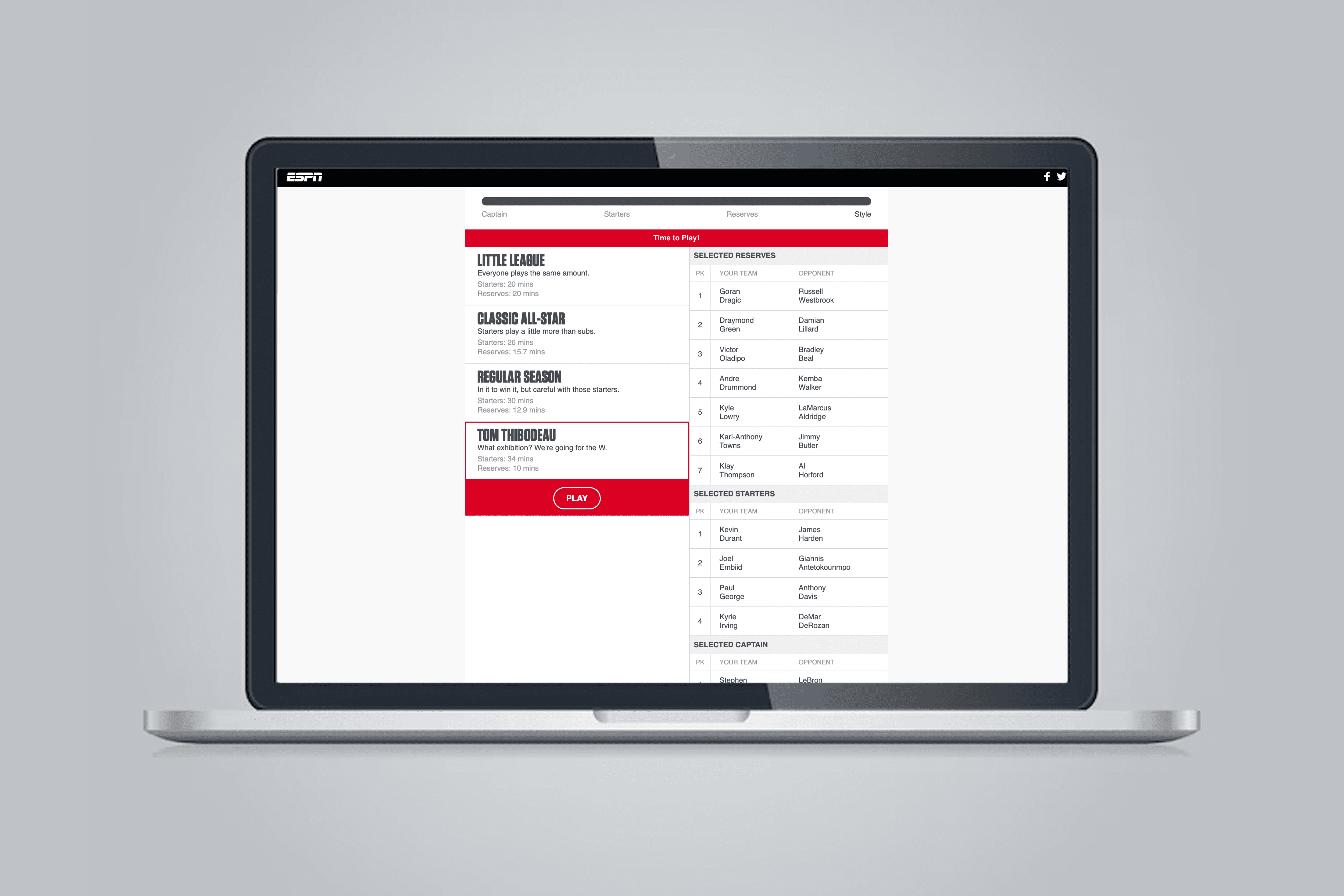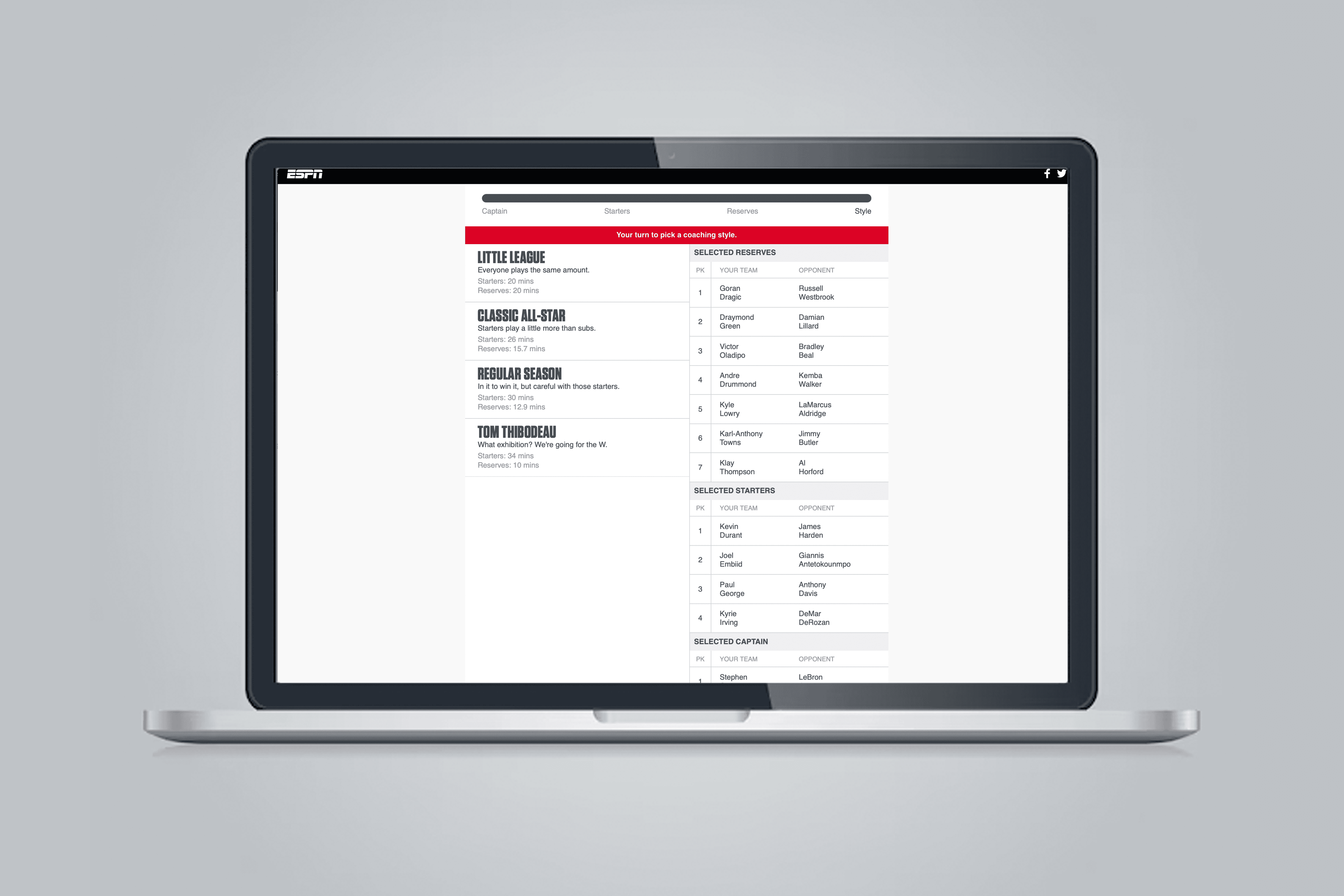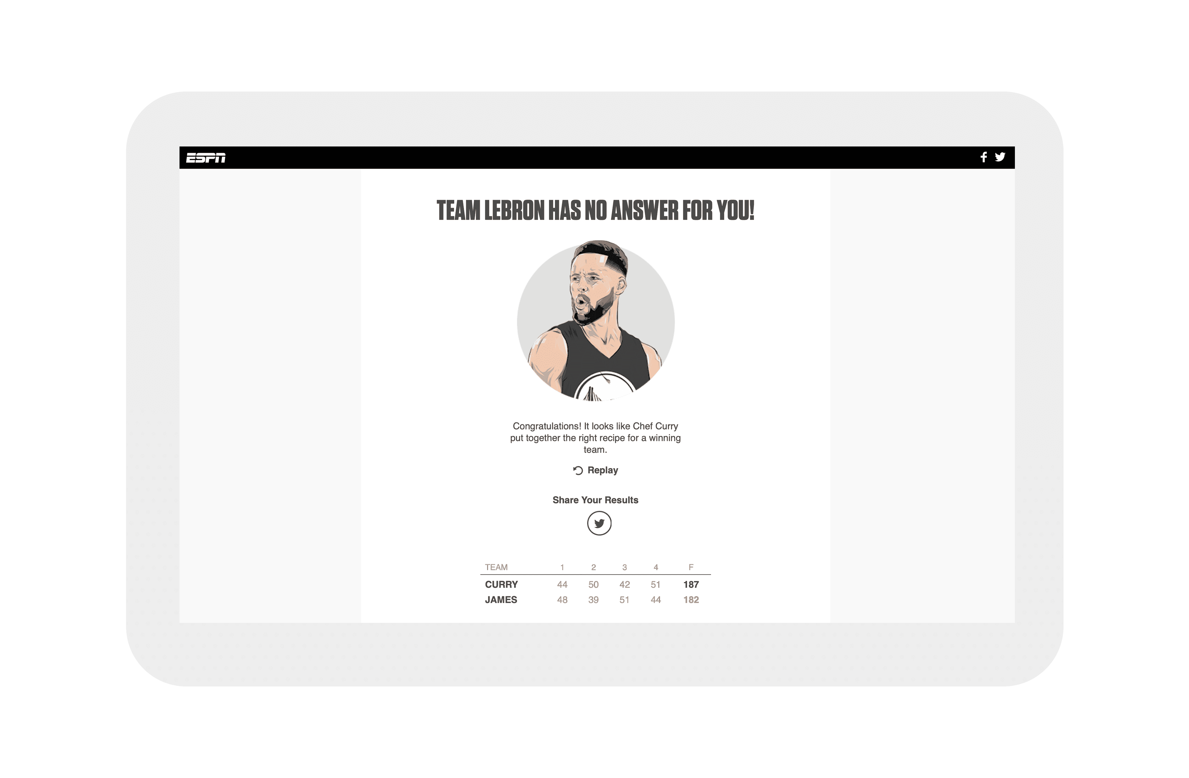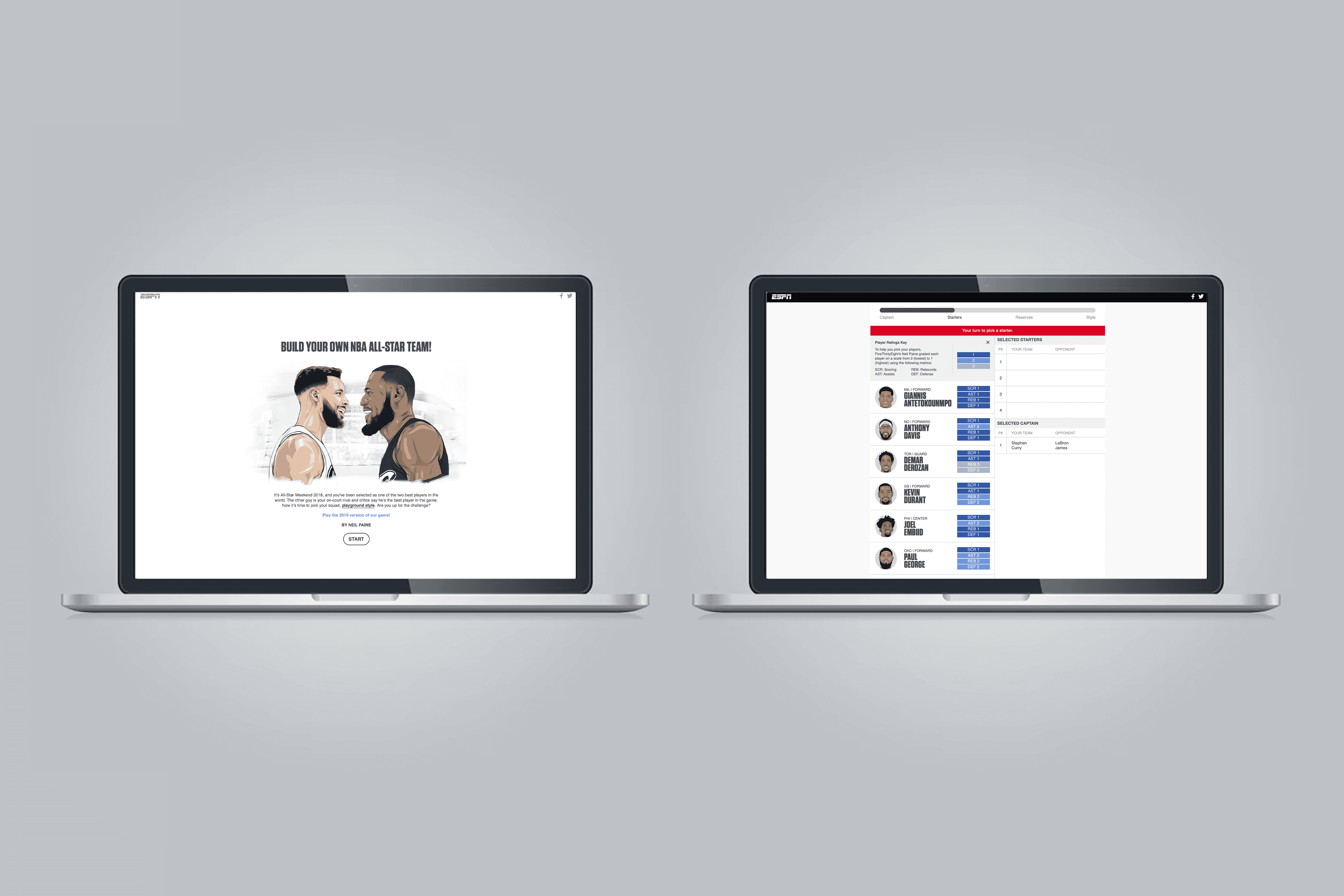 The Build Your Own NBA Allstar Team experience is a fantasy-style digital product, that allows fans to build custom teams and simulate game scores. Inspired by the league’s new playground-style format which was announced in 2017, the experience blends competition, personalization, and engagement into a fun, interactive platform for basketball fans.